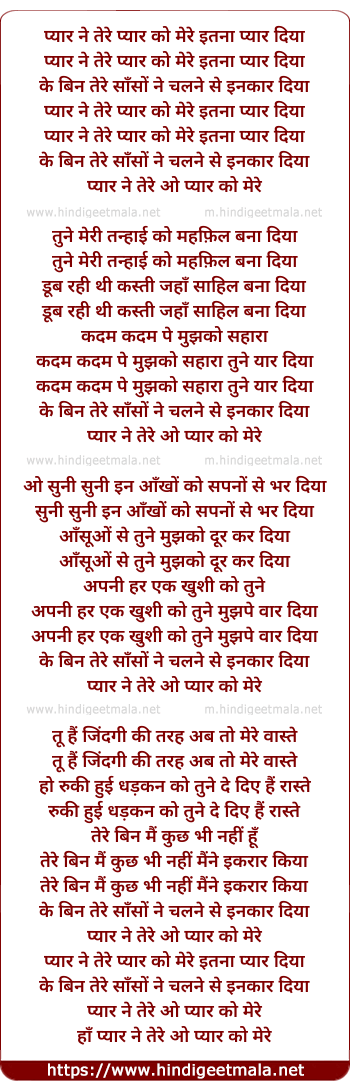 Poetic Translation - Lyrics of Pyar Ne Tere - प्यार ने तेरे
