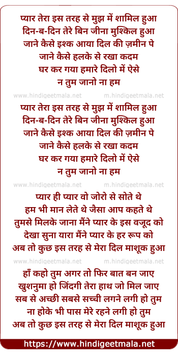 pyar tera iss tarah se mujh me shamil hua