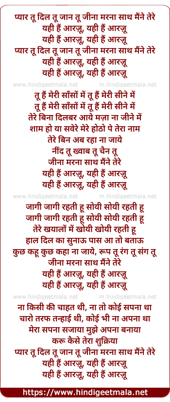yahi hai aarzu, yahi hai aarzu