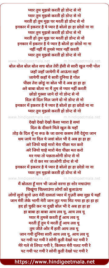 Lyrics of Pyar Tum Mujhse Karti Ho - प्यार तुम मुझसे करती हो