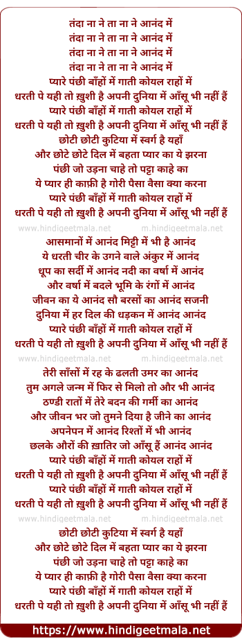duniya me har dil ki dhadkan me aanand aanand