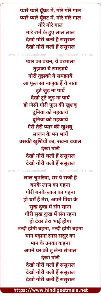 Lyrics of Pyare Pyare Ghunghat Me - प्यारे प्यारे घूँघट में