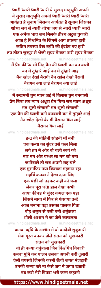 Lyrics of Pyari Pyari Ye Sukhad Maatrubhumi Apni - प्यारी प्यारी प्यारी प्यारी ये सुखद मातृभूमि अपनी