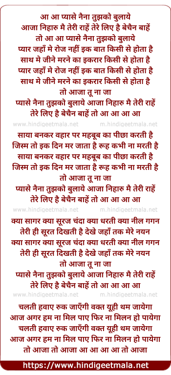 Lyrics of Pyase Naina Tujhko Bulaye - प्यासे नैना तुझको बुलाये