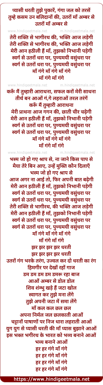 Lyrics of Pyasi Dharti Tujhe Pukare - प्यासी धरती तुझे पुकारें