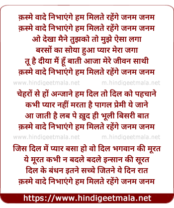 qasme vaade nibhaayenge ham milate rahenge janam janam