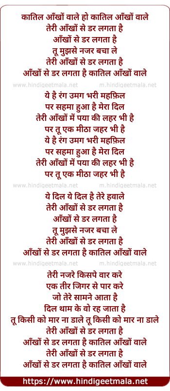 aankho se dar lagta hai qatil aankho wale