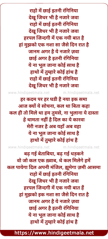 Lyrics of Raho Me Chhai Itani Ranginiya - राहो में छाई इतनी रंगिनिया