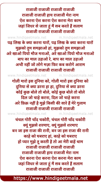 Lyrics of Rajaji Mera Naam - राजाजी मेरा नाम