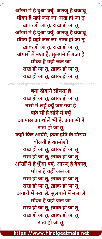 Lyrics of Raakh Ho Ja Tu - राख हो जा तू