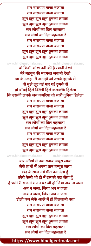 Lyrics of Raam Narayan Baja Bajata - राम नारायण बाजा बजाता