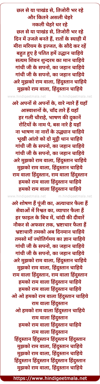 are mujhko raam wala, hindustan chahiye