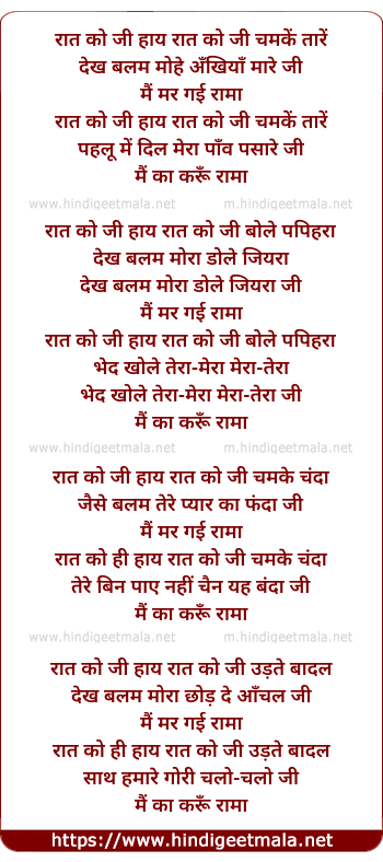 Lyrics of Raat Ko Ji Haye - रात को जी हाय
