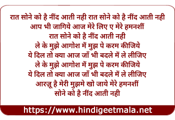 Lyrics of Raat Sone Ko Hai, Neend Aati Nahi - रात सोने को है, नींद आती नही