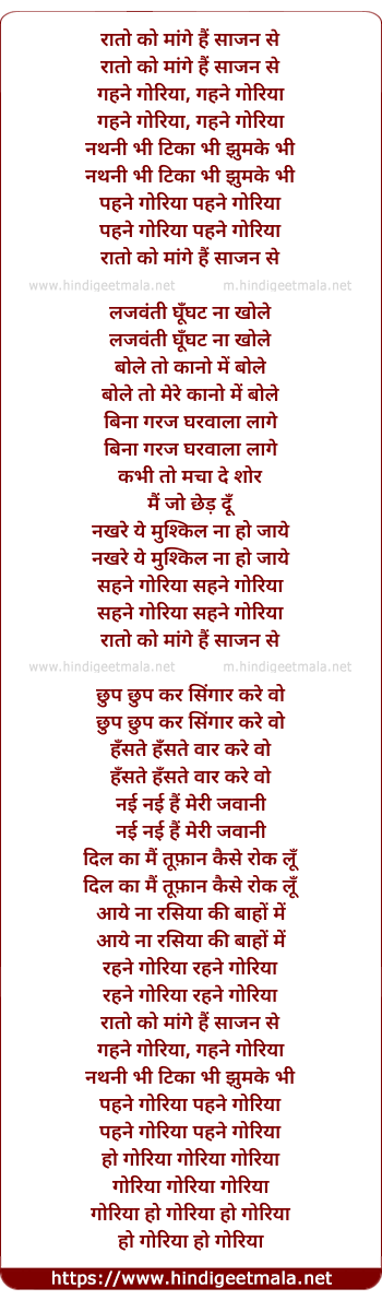 Lyrics of Raato Ko Maange Hai Saajan Se - रातो को मांगे हैं साजन से