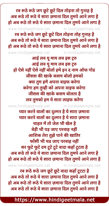 Lyrics of Rab Ruthe Ruthe Jag Chute Chute - रब रूठे रूठे जग छूटे छूटे
