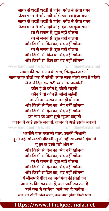 Lyrics of Rab Se Sajan Se Juth Nahi Bolna - रब से सजन से झूठ नहीं बोलना