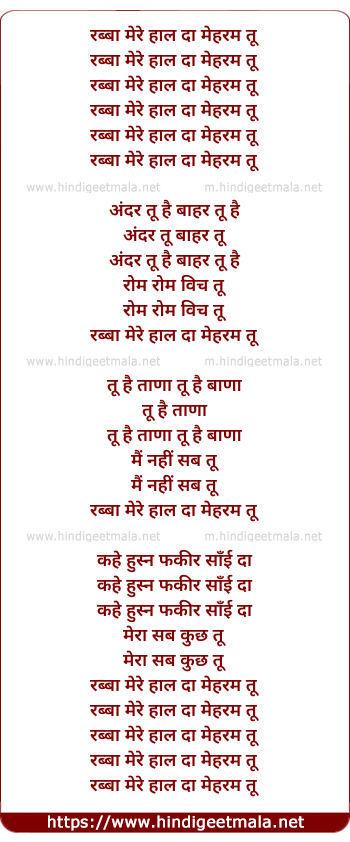 Lyrics of Rabba (Javed Bashir) - रब्बा मेरे हाल दा मेहरम तू