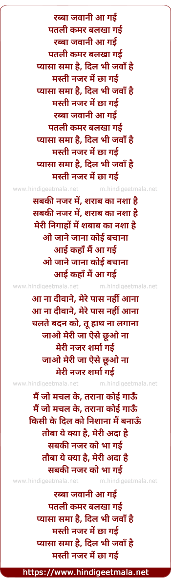 Lyrics of Rabba Jawaani Aa Gayi - रब्बा जवानी आ गई