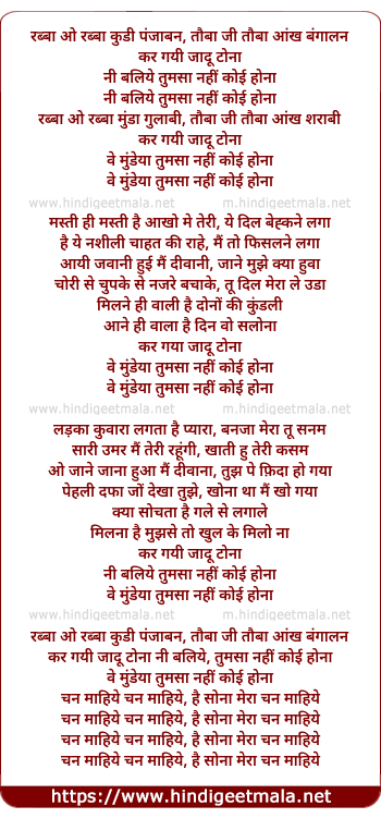 Lyrics of Rabba O Rabba Kudi Panjaban - रब्बा ओ रब्बा कुडी पंजाबन