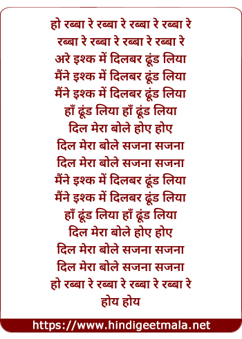 Lyrics of Rabba Re - Funky Mix - हो रब्बा रे रब्बा रे रब्बा रे रब्बा रे