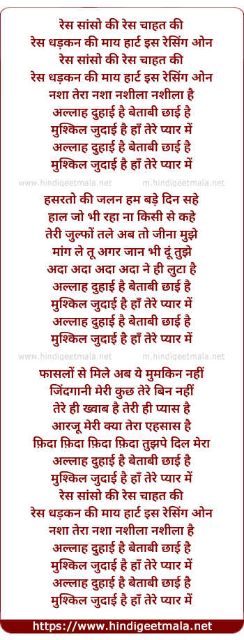 Poetic Translation - Lyrics of Race Sanso Ki Race Chahat Ki - रेस सांसो की रेस चाहत की