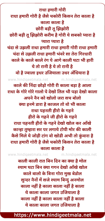 radha hamari gori hai jaise chakori kisan tera kala hai