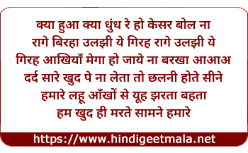 Lyrics of Rage Birha Uljhi Ye Girha - रगे बिरहा उलझी ये गिरहा