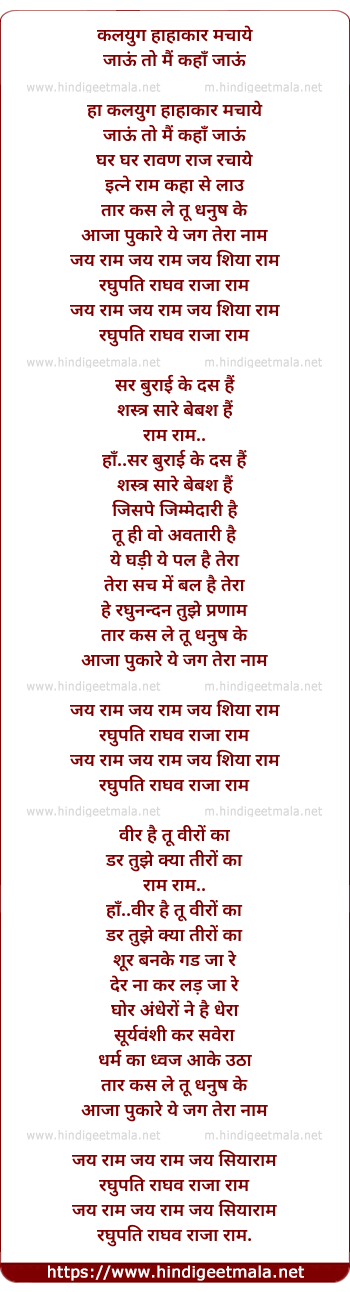 Lyrics of Raghupati Raghav Rajaa Ram - रघुपति राघव राजा राम