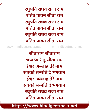 Lyrics of Raghupati Raghav Rajaram (Ram Dhun) - रघुपति राघव राजा राम