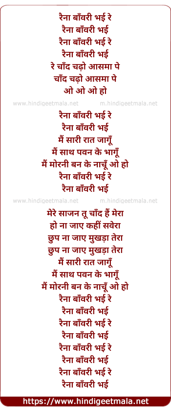 Lyrics of Raina Bawari Bahi Re - रैना बाँवरी भई रे
