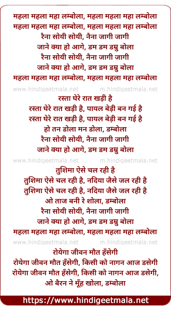 Lyrics of Raina Soyi Soyi Naina Jagi Jagi (Mahala Mahala Maha Lambola) - रैना सोयी सोयी, नैना जागी जागी (महला महला महा लम्बोला)