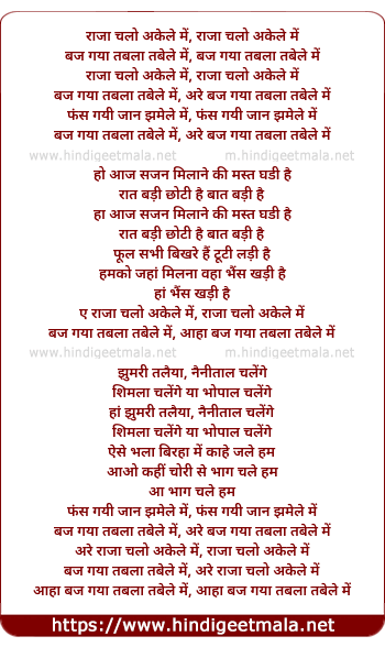 Lyrics of Raja Chalo Akele Mein - राजा चलो अकेले में