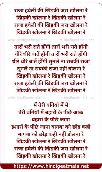 Lyrics of Raja Haveli Ki Khidki Zara Kholna Re - राजा हवेली की खिड़की जरा खोलना रे