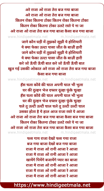 Lyrics of Raja O Raja Tera Baj Gaya Baaja - राजा ओ राजा तेरा बज गया बाजा