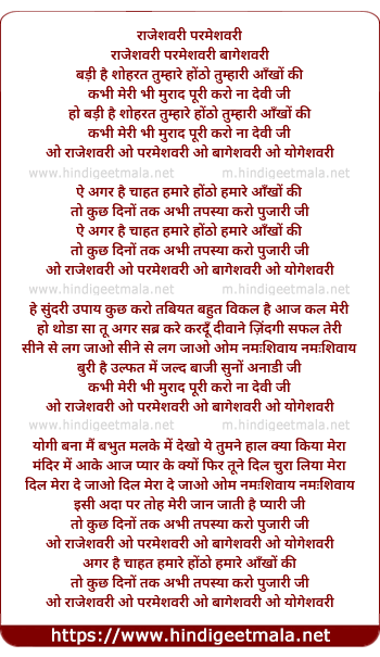 Lyrics of Raajeshwari O Parmeshwari - राजेशवरी ओ परमेशवरी