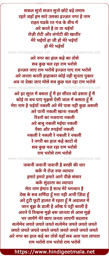 Lyrics of Raam Bharose - राम भरोसे