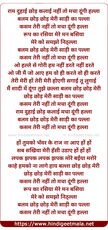 Lyrics of Ram Duhayi Chhod Kalaayi - राम दुहाई छोड़ कलाई