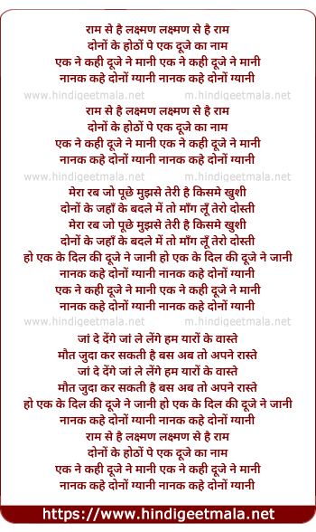 Lyrics of Ram Se Hai Laxman Laxman Se Hai Ram - राम से है लक्ष्मण लक्ष्मण से है राम