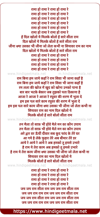 Rama ho Rama re, Rama ho Rama re.