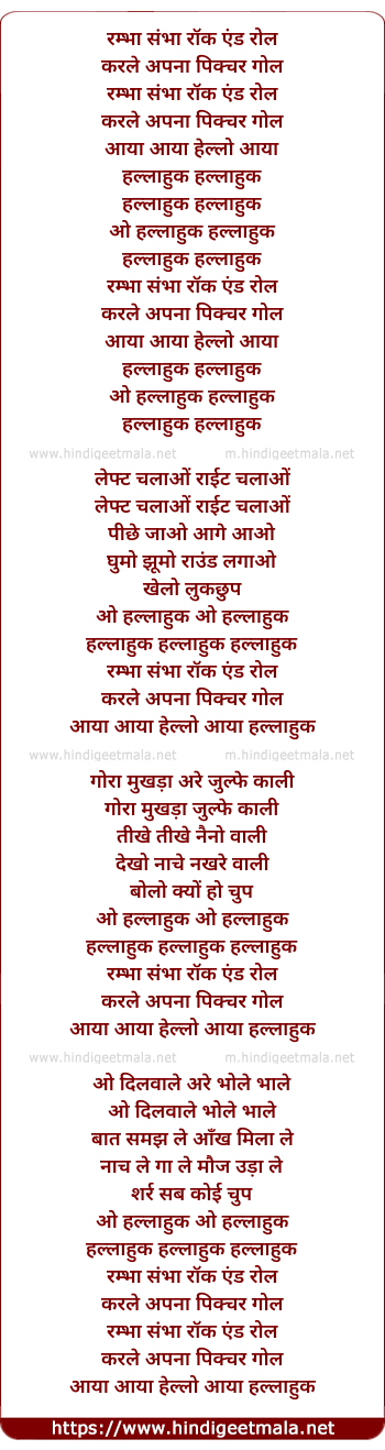 Lyrics of Rambha Sambha Rock N Roll - रम्भा संभा रॉक एंड रोल
