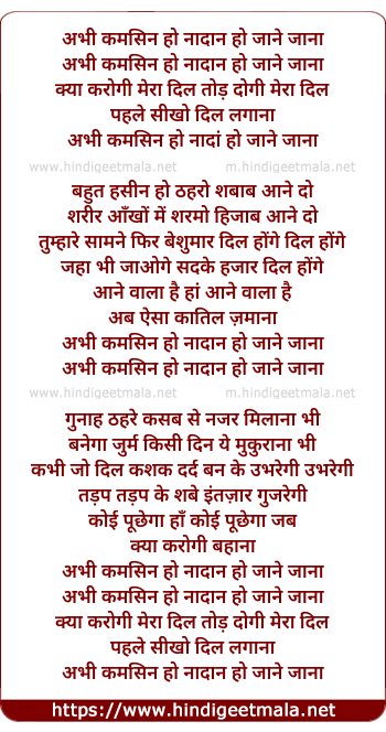 Lyrics of Rang Bhare Din Hain, Abhi Kamsin Hain - रंग भरे दिन है, अभी कमसिन हैं