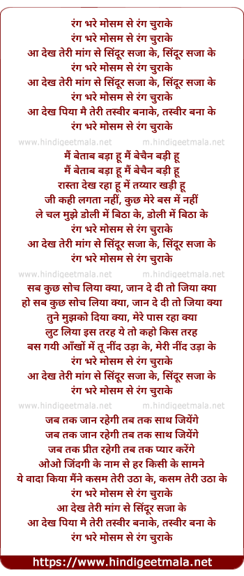 Lyrics of Rang Bhare Mausam Se Rang Chura Ke - रंग भरे मौसम से रंग चुराके