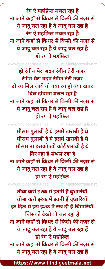 Lyrics of Rang E Mehfil Machal Rha Hai Na Jane Kaha Se - रंग ऐ महफ़िल मचल रहा है ना जाने कहाँ से