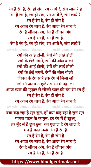 rang hai rang hai, rang hi sang, rang aaye re, sang laye re he