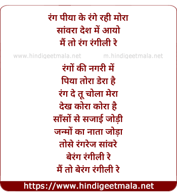 Lyrics of Rang Rangeeli - रंग रंगीली