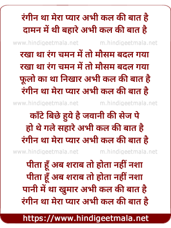 Lyrics of Rangeen Tha Mera Pyaar - रंगीन था मेरा प्यार