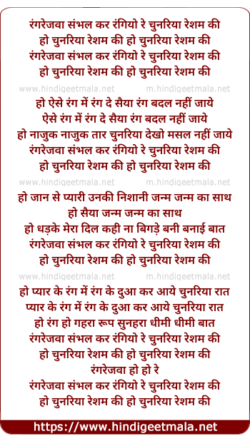 rangrejva sambhal kar rangiyo re chunriya resham ki
