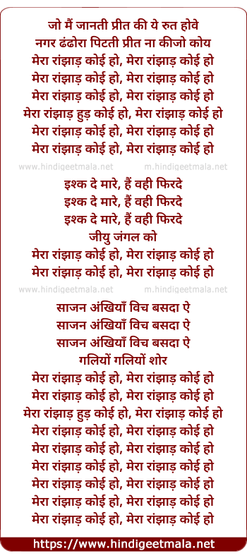 mera ranjhar hud koi ho, mera ranjhar koi ho