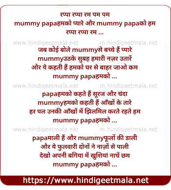 Lyrics of Rappa Rappa Ram Pam Pam, Mummy Papa Humko Pyare - रप्पा रप्पा रम पम पम